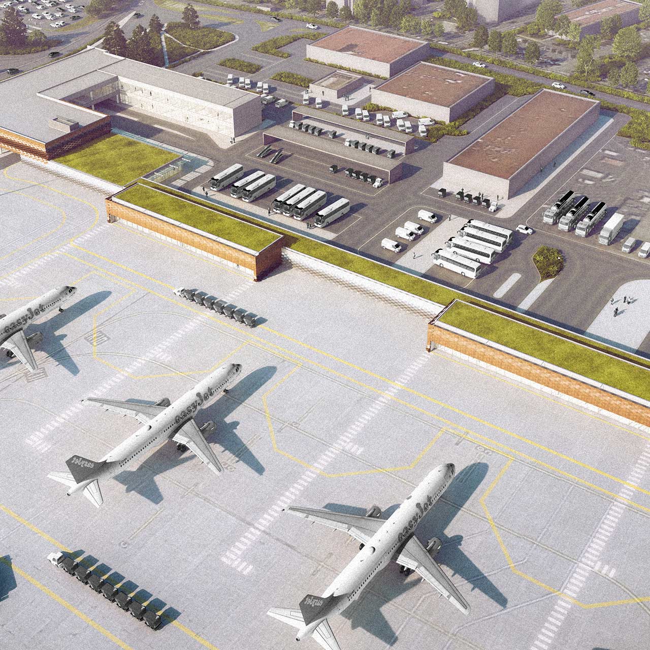 The main challenge is to build a façade that relieves the current airport of its patchwork construction due to successive enlargement and multiple extension programmes. The low-cost pier has the particularity of creating passenger access to the aircraft without the need for shuttles. This typology allows for a quick and inexpensive organisation of flights. It is within this framework that the programme is structured in the continuity of the existing airport, giving it a sober façade that accentuates the extension and the link with the existing.