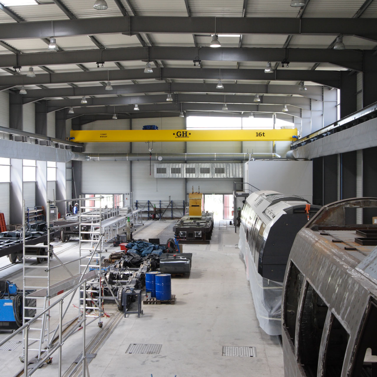 L’enjeu étant d’être attentif au flux de travail mis en place, le projet entrelace deux approches complémentaires. La première consiste en un rythme rapide de construction, garant de la non-interruption de la production. Le projet s’ancre dans un volume simple et son principe architectural opte pour la mise en œuvre d’une structure de grandes portées autorisant de longues baies vitrées. Les éclairages zénithaux, répartis de façon homogène, renforcent une qualité d’éclairage naturel constante.