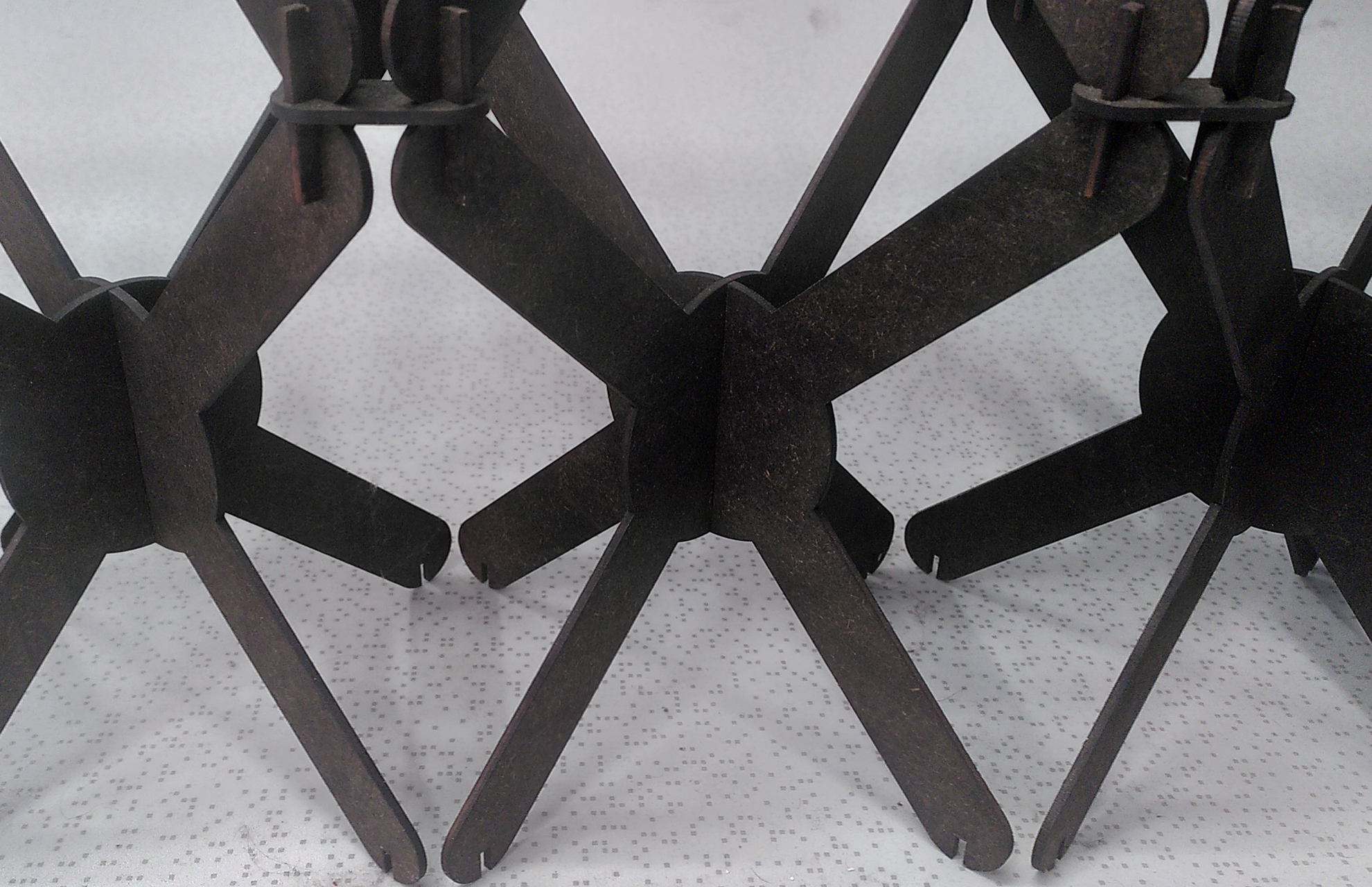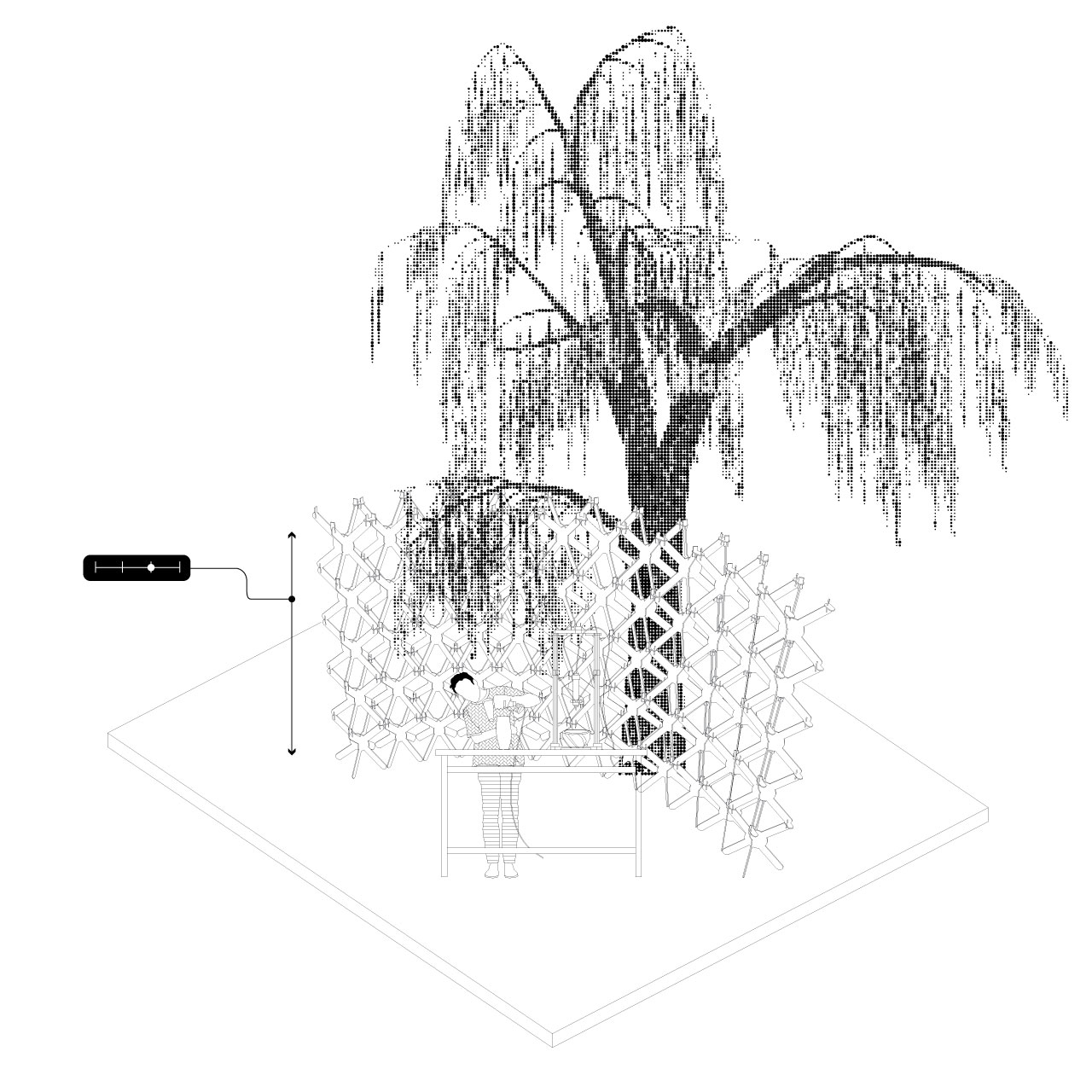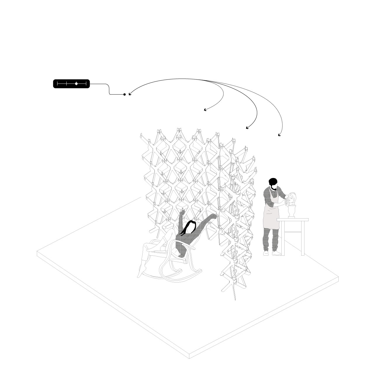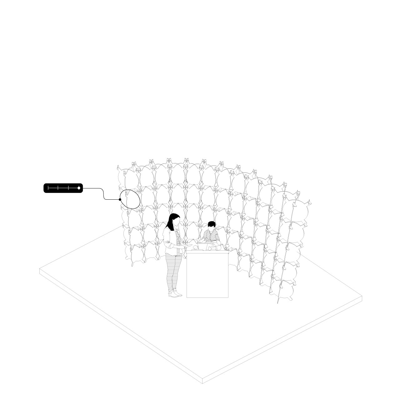 La pratique se déploie au travers des modules qui s’assemblent, se déplient, se recomposent, s’accrochent, se reconfigurent à l’infini pour ordonner son espace en fonction des usages qui y prennent place. L’ensemble est paramétrable en courbure, mais surtout en opacité.