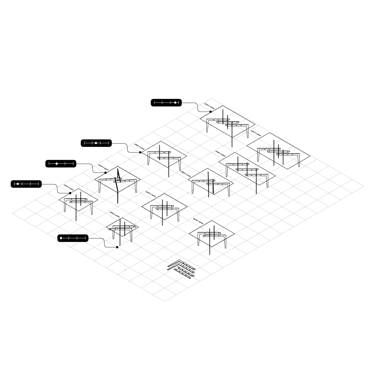 L’idée, en utilisant ces tréteaux, est de parvenir facilement à une grande variété de formats de tables : l’assemblage par encastrements est simple, ce qui permet de les transformer rapidement. Afin de garantir une plus longue longévité à ces objets de première nécessité, ils ont été paramétrés pour correspondre à l’exacte dimension de chaque logement. Les tables peuvent ainsi être réparer ou modifier.