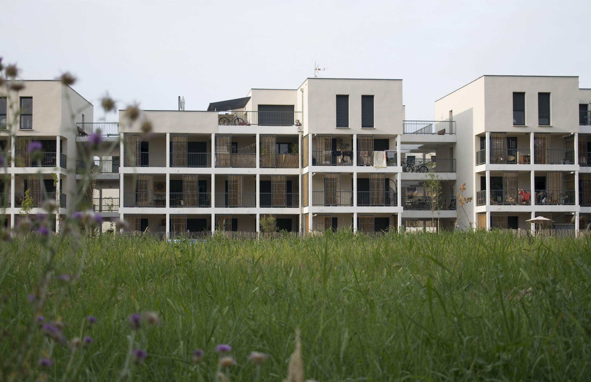 Il disegno urbano del progetto è stato realizzato da 3 studi di architettura e 3 promotori; questa richiesta, risultante dalla fase di concorso, aveva l'obiettivo di creare un insieme uniforme e vario per le 170 abitazioni da creare. L'agenzia si occupa di tutte le 55 abitazioni situate di fronte al parco alberato, organizzate in modo da beneficiare rispettivamente di un doppio orientamento, con un'apertura del soggiorno verso il paesaggio del parco. I cortili, i balconi e le logge fungono da spazi intermedi e permettono una porosità tra spazio privato e pubblico, così come un principio di intercambiabilità della destinazione d'uso dell'edificio, creando così un edificio transgender che può diventare tanto ufficio quanto abitazione.